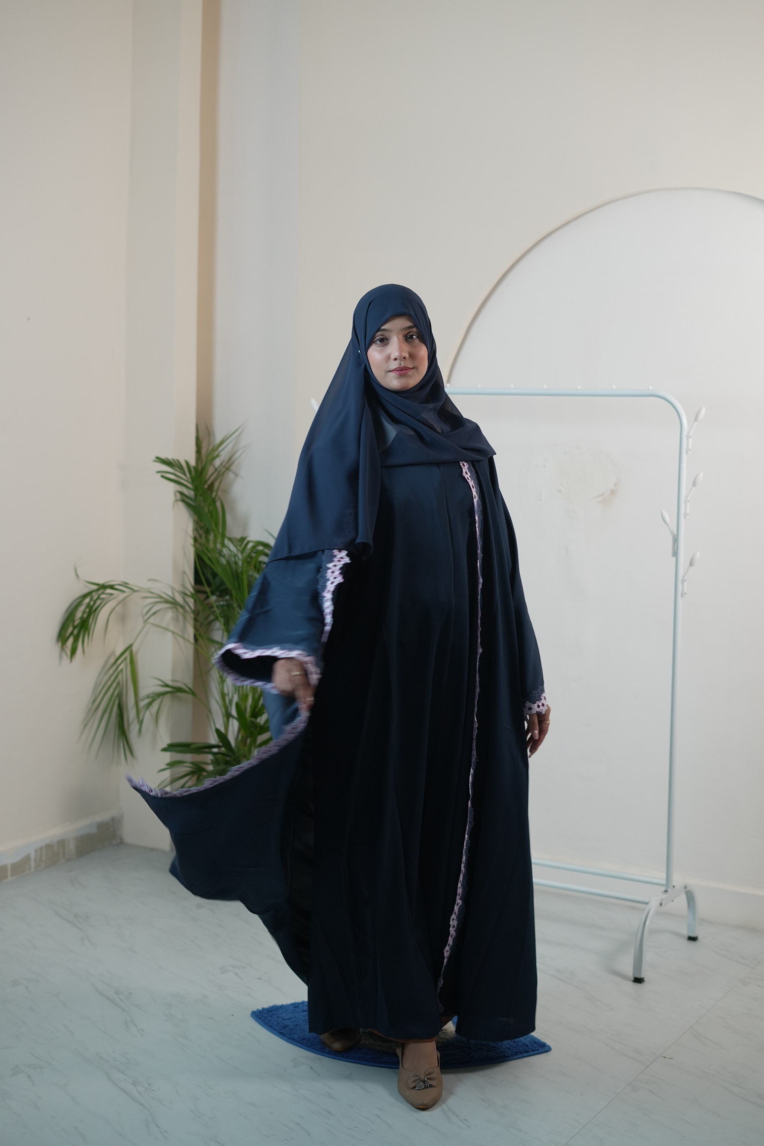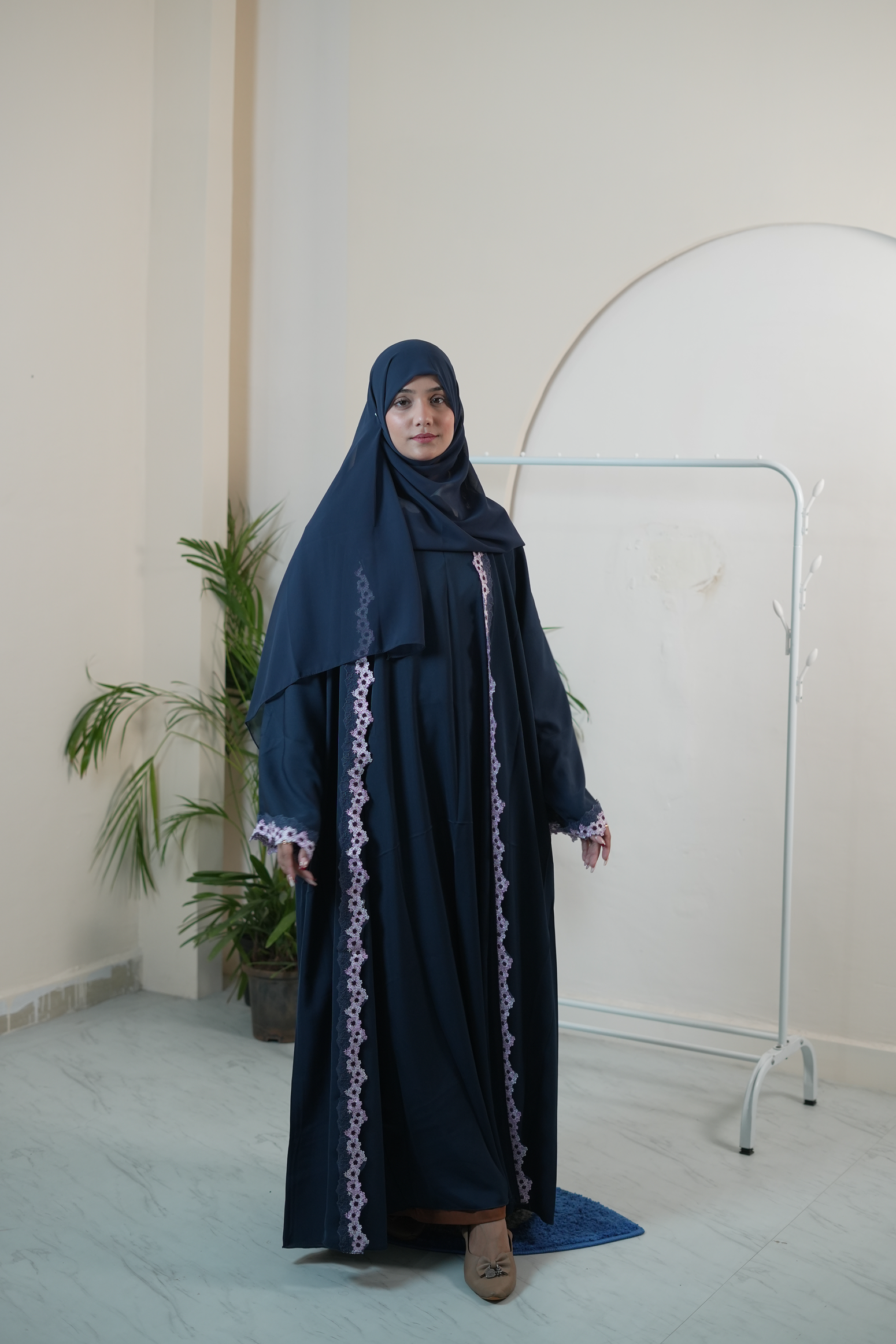 Soft, sophisticated, and refreshingly elegant - the Berry Blue Lace Abaya in Nada fabric is designed to make a subtle statement of luxury and grace. Crafted from premium Nada fabric, it features a smooth, matte finish that drapes beautifully, ensuring both comfort and refined structure. The delicate lace detailing adds a romantic and modern touch, enhancing the abaya's overall charm.